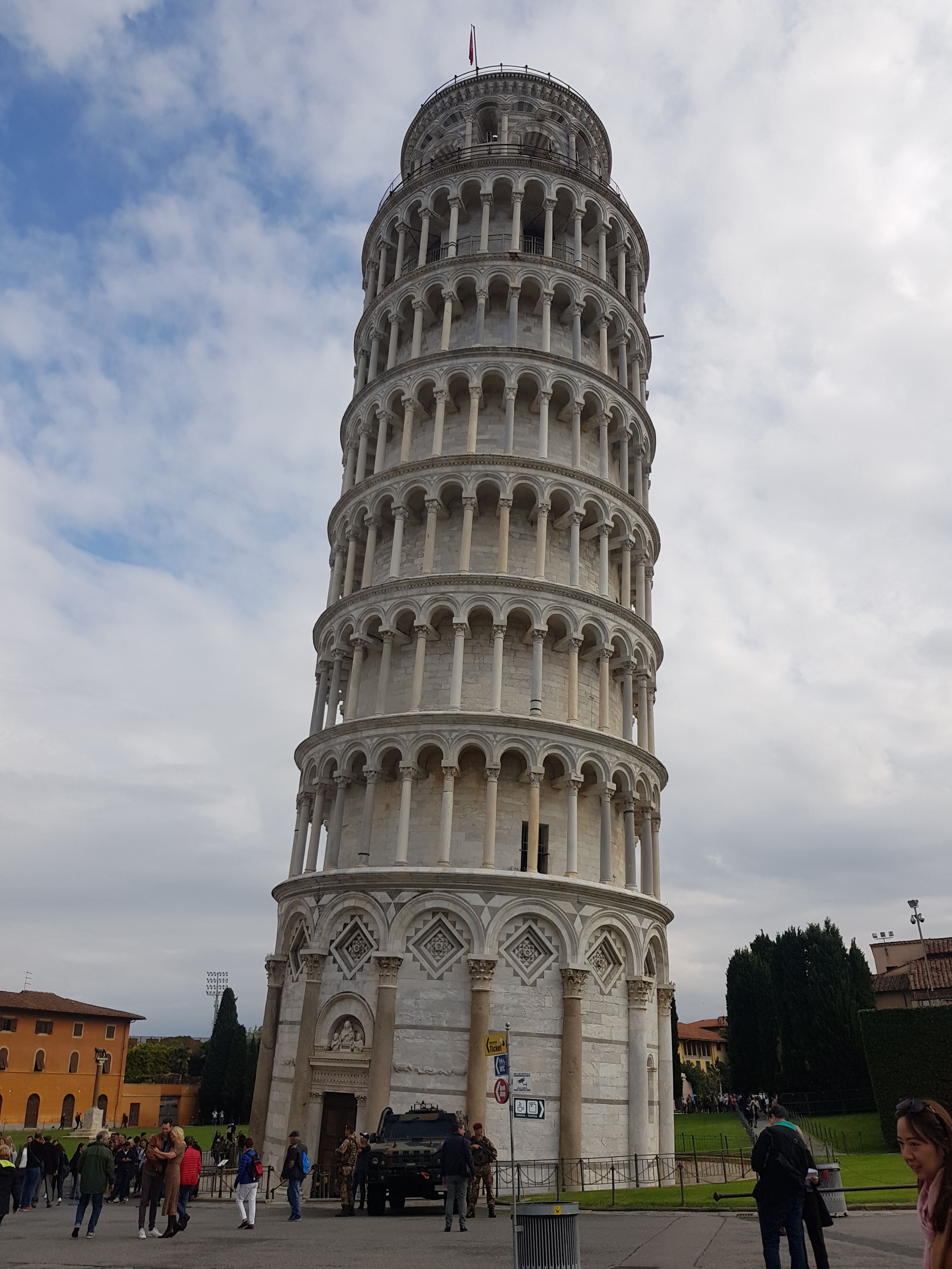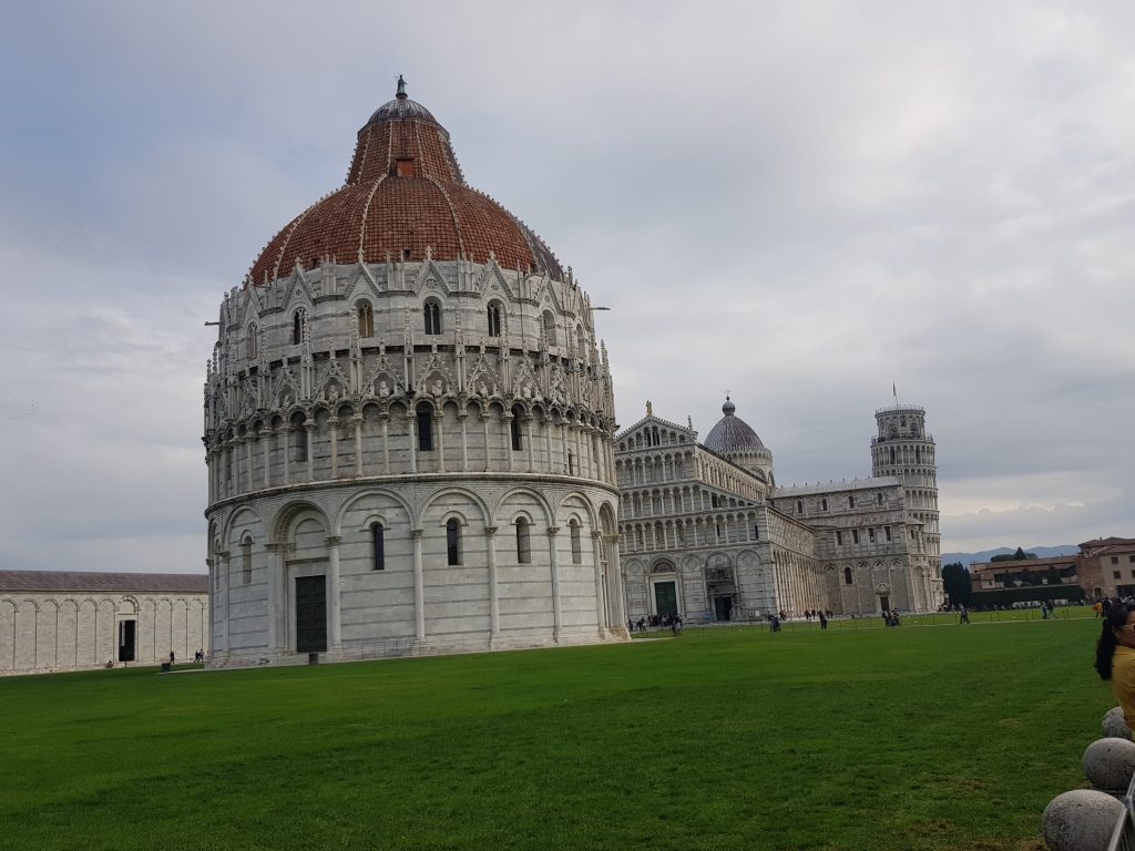 The Tower of Pisa referred simply as the Bell Tower, or Campanile which was made famous by its noticeable tilt is the crowning glory of the complex. A climb to the top of the bell tower is a must but its not for the faint hearted. The entire experience is weird primarily because the building is tilted.