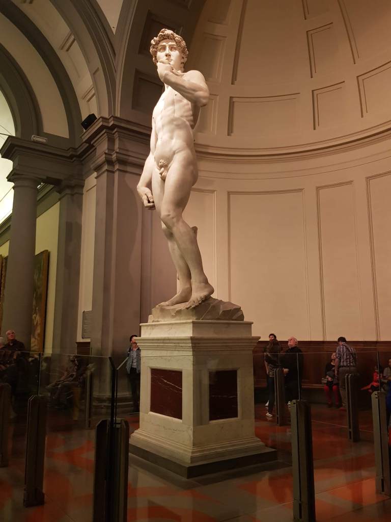 To think that David was sculpted from a single block of white marble that had been worked on more than 50 years earlier by Donatello. At that time the marble was said to have had a flaw in it and the project was abandoned.