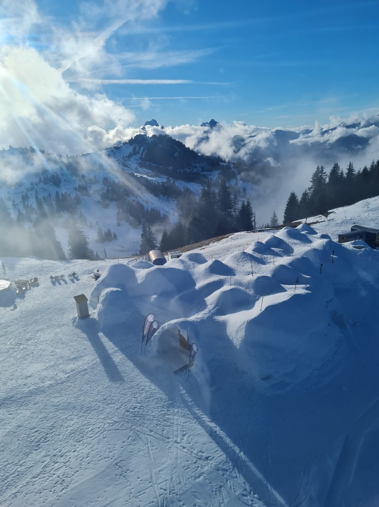 We were scheduled to visit the Iglu-Dorf, but due to some family members missing the brief on what to wear, it turned out to be a bad idea. As we arrived at Saanersloch Gondola base to take a Gondola to Iglu-Dorf that sits 2,000m above sea level, it became visibly obvious that some family members were not dressed warm enough.